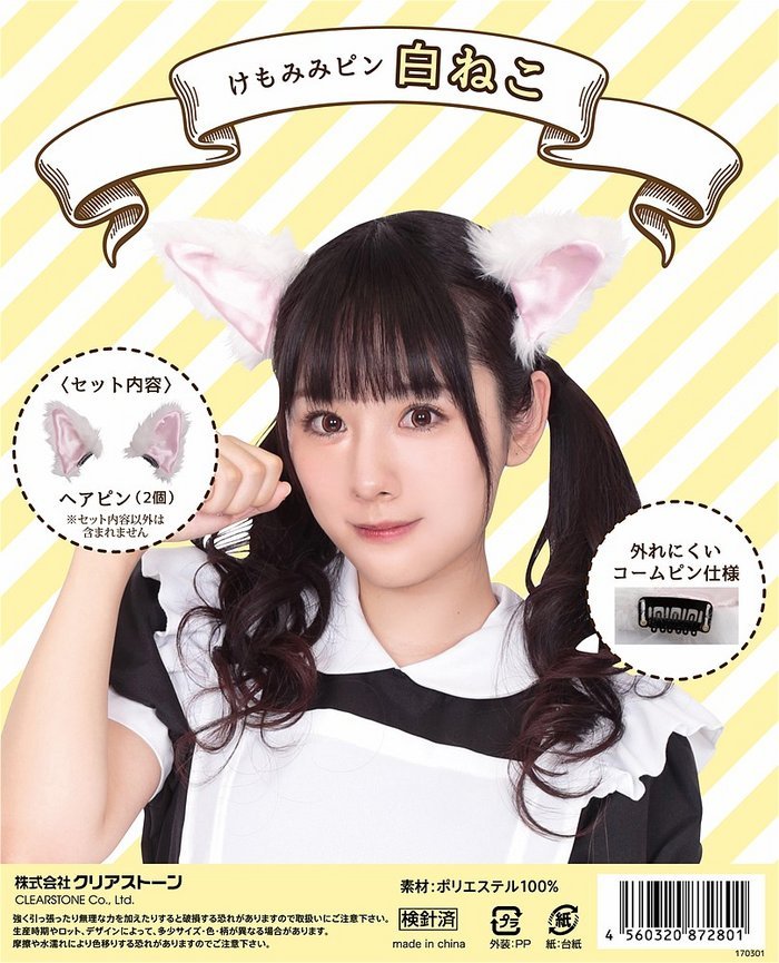 【メール便対応1個まで】コスプレ けもみみピン 白ねこ ネコ 猫 動物 仮装 コスプレ 衣装 けものフレンズ風 アニマルアクセサリー