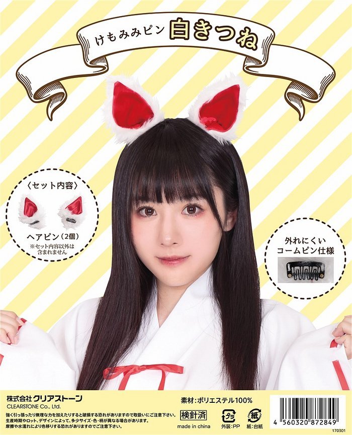 【メール便対応1個まで】コスプレ けもみみピン 白きつね キツネ 狐耳 動物 仮装 コスプレ 衣装 けものフレンズ風 アニマルアクセサリー